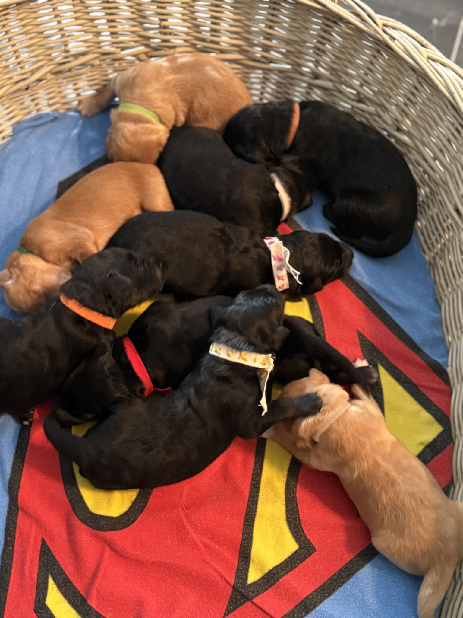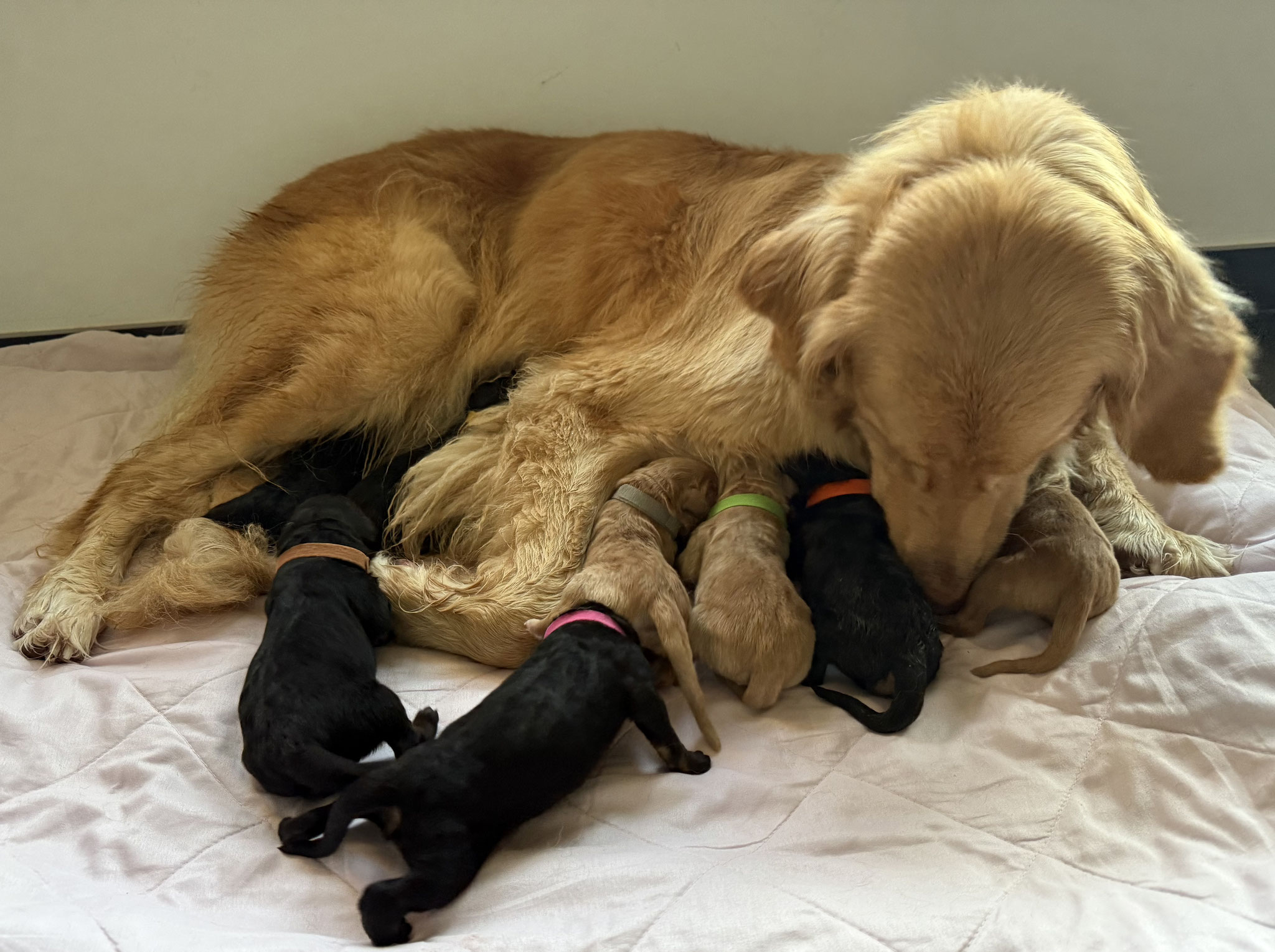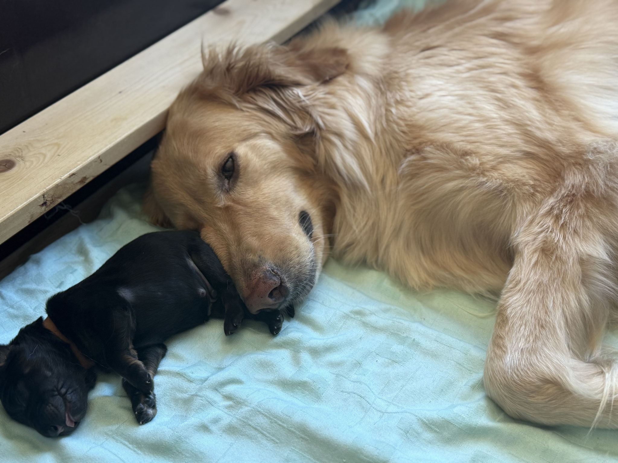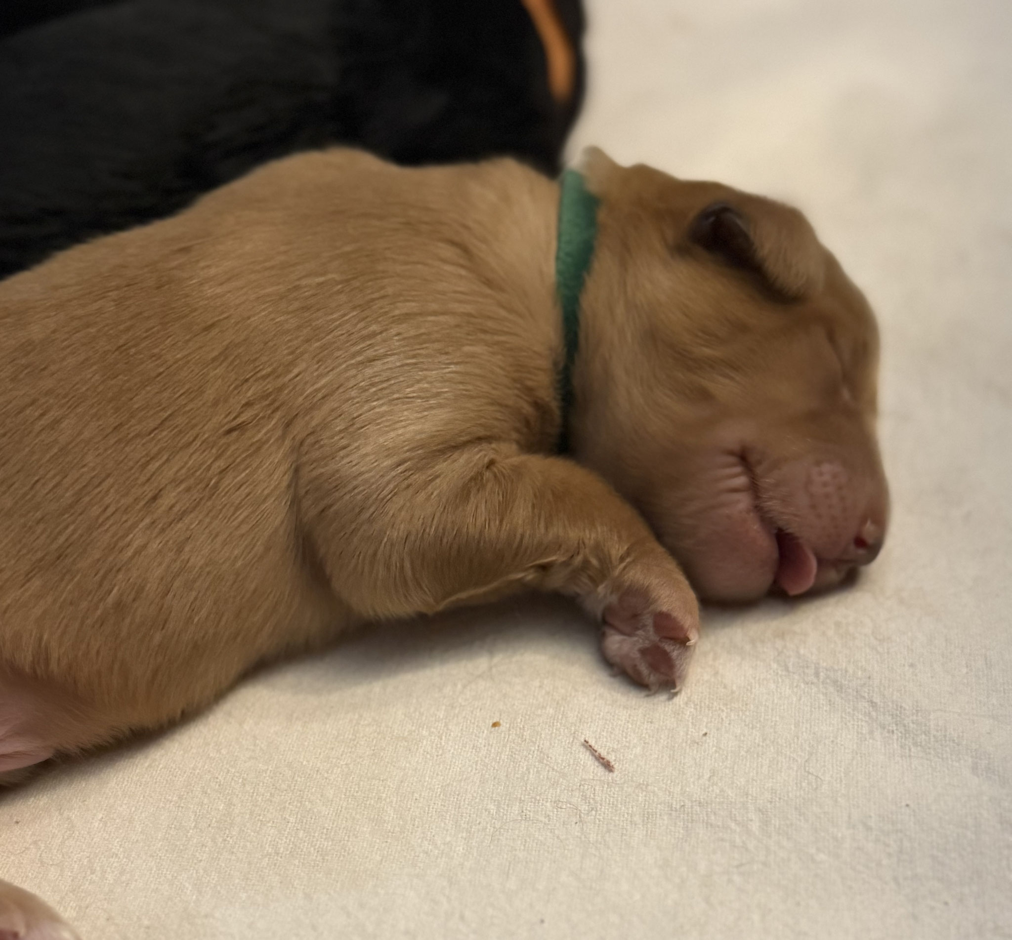 Am 08.09.2025 schenkte unsere Elli vom Bethanienberg uns den I-Wurf vom Bethanienberg. Geboren wurden 3 blonde, 1 schwarzmarkener Rüde und 5 schwarzmarkene Hündinnen. Alle Welpen sind wohlauf und Elli kümmert sich gut um die Zwerge.